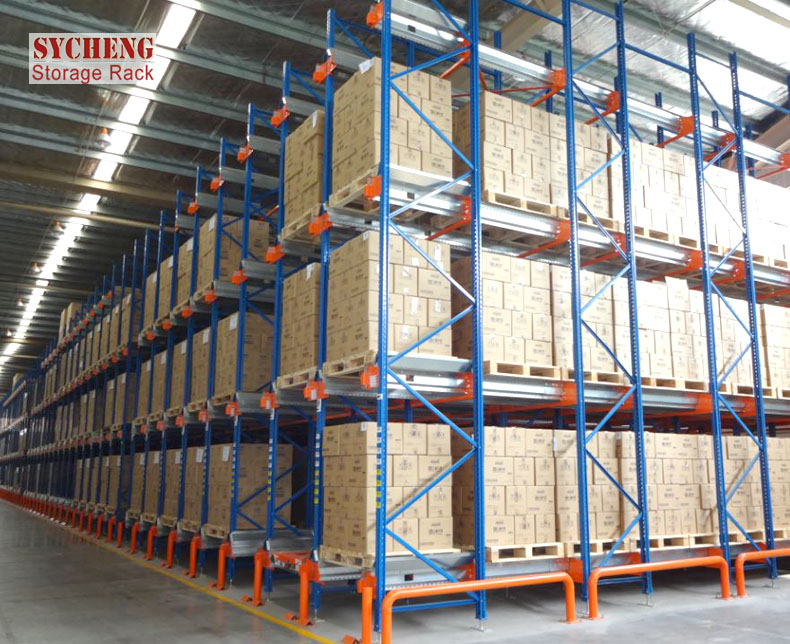1.采用穿梭式貨架,可以根據(jù)倉(cāng)庫(kù)尺寸,僅有1條叉式作業(yè)通道,順著物流的方向布置;