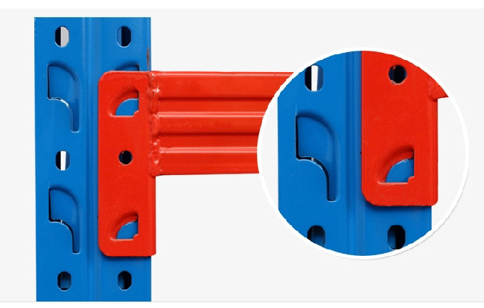 中型貨架立柱是由冷軋鋼板經專用冷彎成型機組輥軋成型,貨架立柱正面沖雙排孔,孔距離以50mm距離沿直線排列,貨架立柱孔用來掛接橫梁之用;兩根貨架立柱相對,中間有橫向連接管和傾斜連接管將兩根貨架立柱組裝成貨架的立柱片。鋼層板采有冷軋鋼板按所需尺寸四邊折彎成型。 橫梁與貨架立柱片掛接組裝成貨架框架,最后鋪設鋼層板,至此一組完整的中型貨架成型。橫梁采用“P”型管材,俗稱“階梯梁”,階梯的高度與中型貨架層板的高度相匹配。各部件加工好成型之后全部經打磨、酸洗、磷化、全自動粉末靜電噴涂、烘干等工藝處理后組裝成品。生產出的中型貨架成品表面光潔、美觀。
