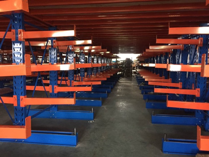 懸臂貨架是由連接拉桿、交叉拉桿、懸臂和立柱等材料組成的,立柱多采用鋼或冷軋型鋼,懸臂采用方管、冷軋型鋼,前伸的懸臂可以是單面或雙面,具備結(jié)構(gòu)輕、載重能力好等優(yōu)點。單臂的承重可以達(dá)到500公斤,承受到2噸-3噸的重量貨物可以選擇特別加固的立柱結(jié)構(gòu)。
